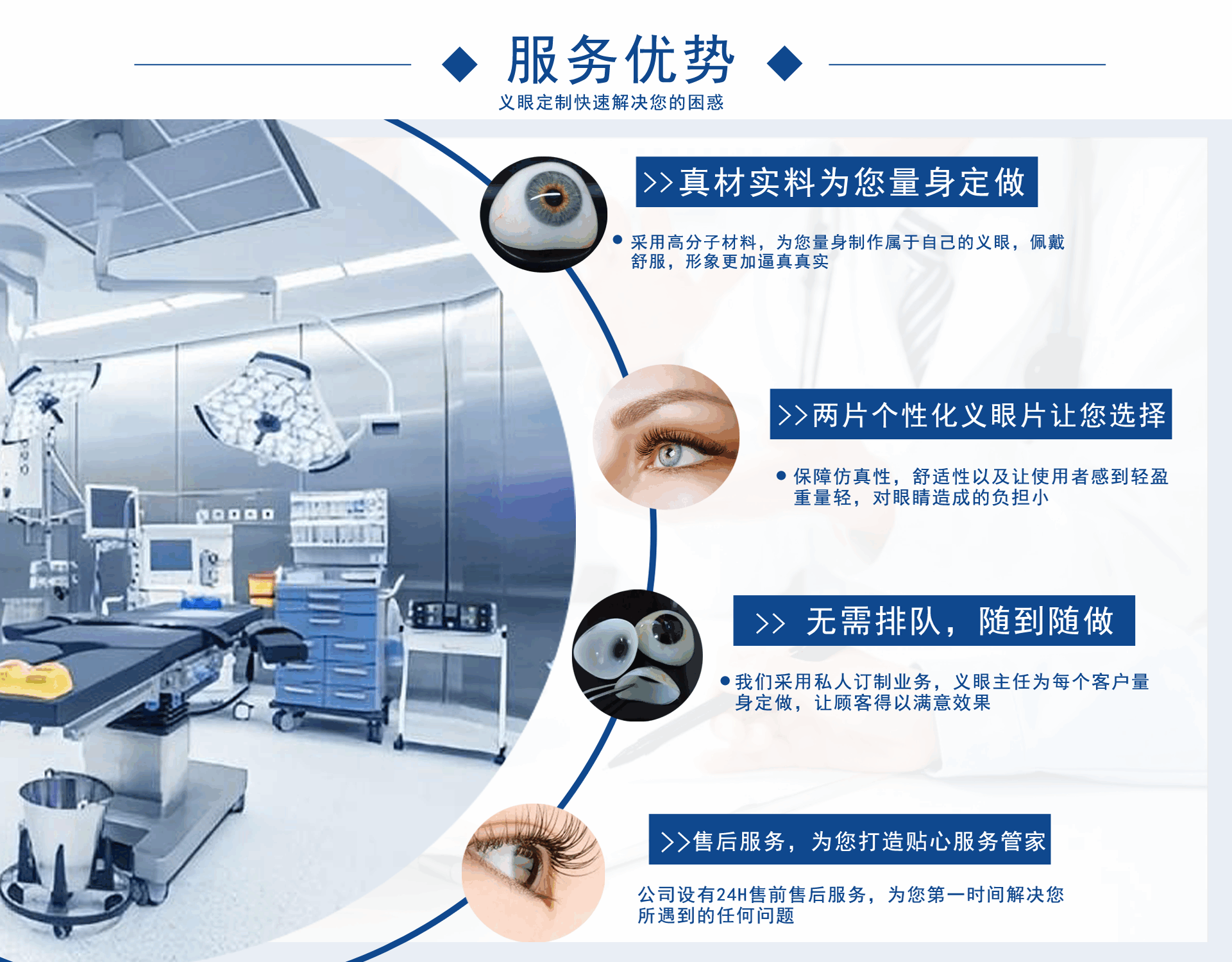 正目醫(yī)療科技有限公司致力于為用戶提供假眼,在哪里可以定制義眼,義眼哪家好,假眼價格,義眼價格,義眼費用,義眼公司,是集義眼定制、保養(yǎng)、咨詢?yōu)橐惑w的綜合性義眼定制企業(yè)?! —殑?chuàng)的義眼工藝結(jié)構(gòu),根據(jù)仿生物學(xué)原理,采用進口醫(yī)用植入材料:高分子材料、無毒素、性能穩(wěn)定、堅固耐用)、聚甲基丙乙烯阝-羥乙酯HEMA材料(軟性親水性材料),結(jié)合獨特的義眼個性化佩戴技術(shù),按佩戴者健眼的形態(tài)、角膜、虹膜、及瞳孔的大小、色澤、血管紋理和脂肪分布,設(shè)計制作。擁有超薄、質(zhì)輕、光滑、親水透氧、佩戴舒適和高逼真的特點。為保證佩戴效...